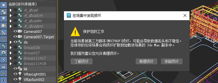 - 目前3dmax病毒出现主要的症状,是会在关闭3dmax时强制保存场景从而容易导致3d文件损坏,删除场景的灯光,复制模型很卡很慢,3dmax闪退,操作不能撤销等。
